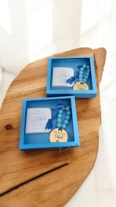 Caixa 10*10*2 - um chocolate Napolitana e dezena com rodela em acrílico personalizada - para menino e para menina