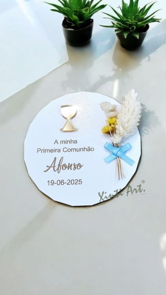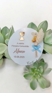 Rodela com aplique acrílico e flores secas