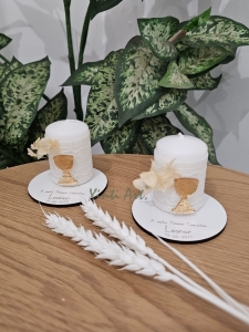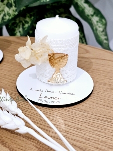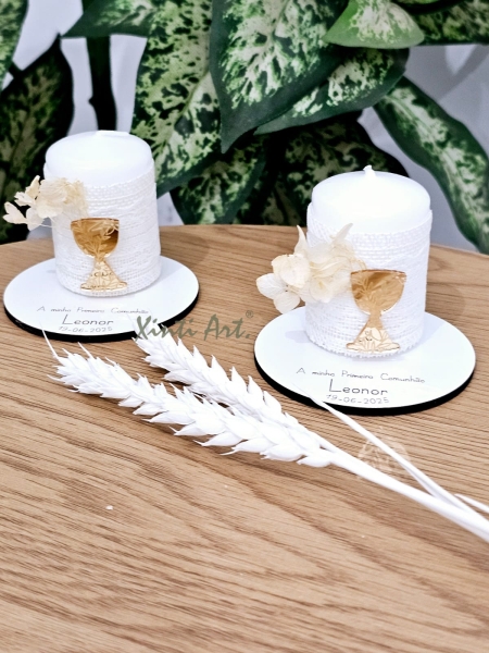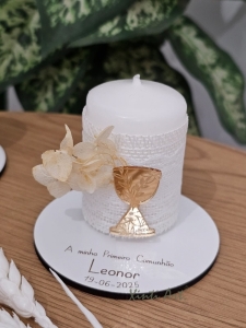 Vela com 5*4cm - base 7.5cm -. inclui saca de organza com etiqueta