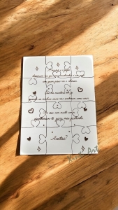 Possibiliade de personalização da caixa com gravação dos nos ou nomes em relevo, e no puzzle gravação. Puzzle 10*15cm - caixa 13*4cm