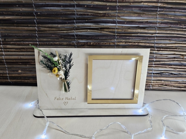 Moldura bétula com detalhe em acrílico dourado