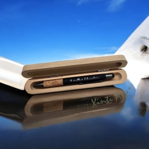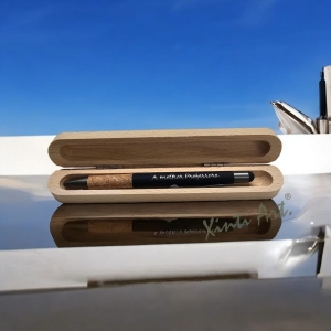 caixa em madeira - esferográfica em alumínio e cortiça - personalizável