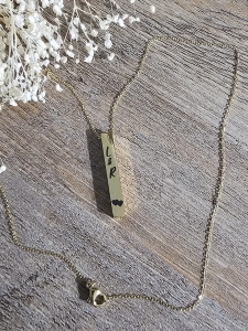 Fio 20cm- Cor disponível prata e ouro - Barra com 2.5x0.5cm - Custo adicional por gravação em mais faces (entre em contacto)- NO CHECKOUT NO CAMPO DE OBSERVAÇÃO COLOQUE OS DADOS PARA A PERSONALIZAÇÃO.