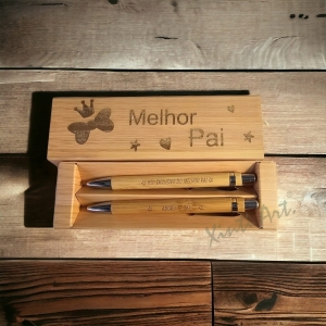 Estojo com Esferográfica e Lápis infinito em bambu
