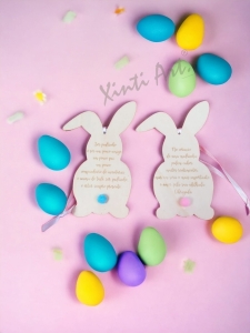 Coelho madeira com Pompom - Padrinho e Madrinha